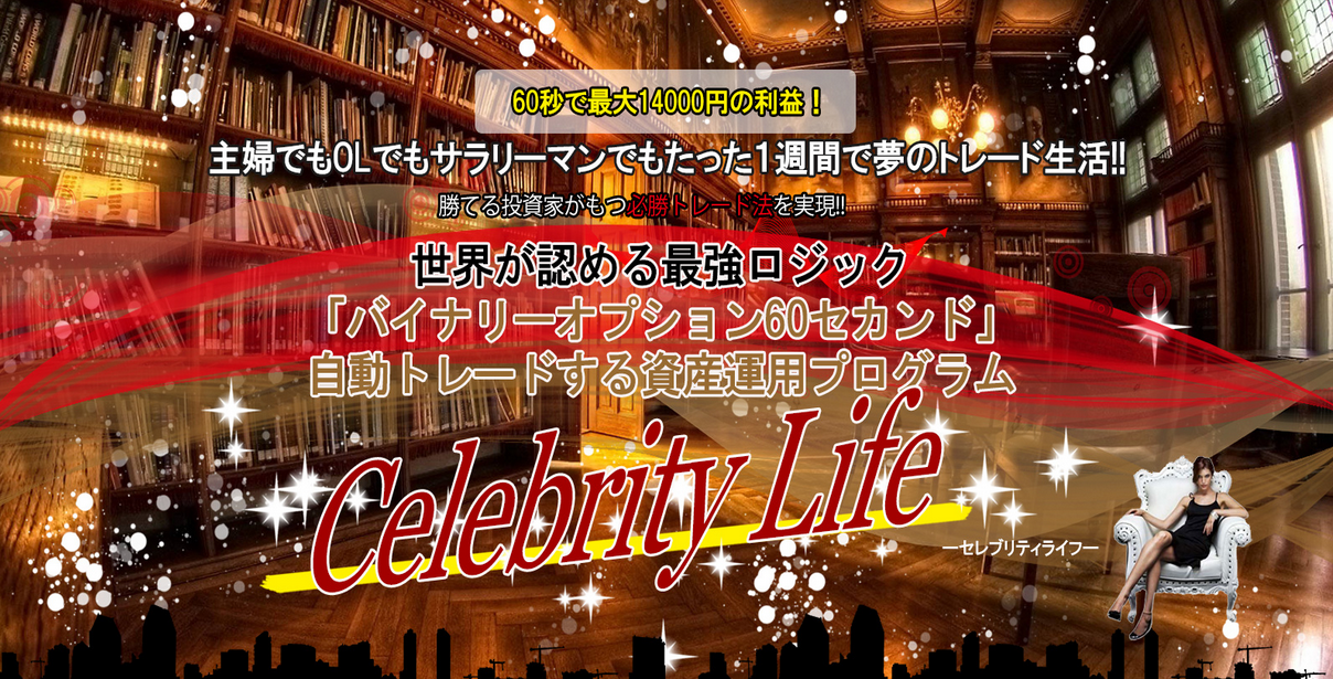 ▼▼「自動売買バイナリーオプション60セカンド「CelebrytyLife」」を豪華特典付きで購入する!▼▼