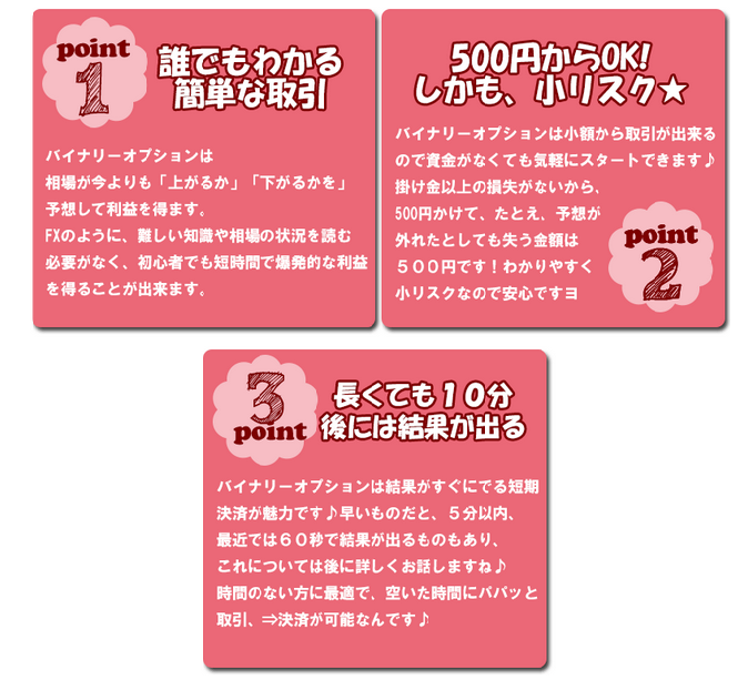 以下はバイナリーオプションの魅力をまとめてみました♪